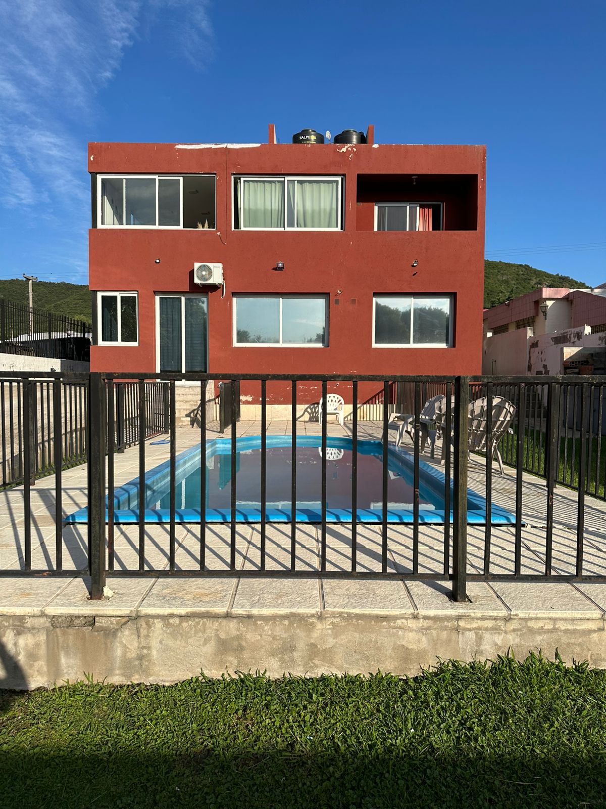 La propiedad es un PH compartido con 2 departamentos mas, tiene patio con césped, asador y pileta compartida.