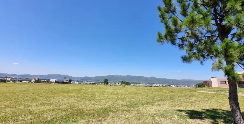 El terreno tiene al frente vista a las sierras y al contra frente vista al Lago